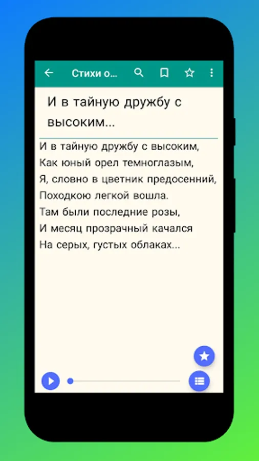 A simple and pleasant interface will allow you to immerse yourself in the great creativity of the great poet. You can also read poetry.
