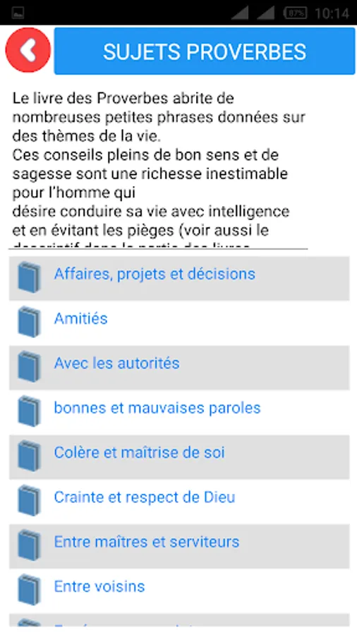 The book of Proverbs contains many soundbites data on issues of life. Such advice full of common sense and wisdom are an invaluable resource for the man who wants to lead his life with intelligence and avoiding traps (see the description in the part of the biblical books). In the Bible, proverbs are mixed and move from one theme to another, this arrangement is not practical to study by subject. Bible Theme will allow you to find a ranking of proverbs according to themes.