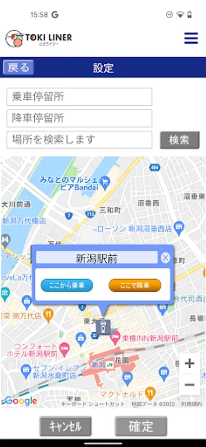 You can choose the stop from the easy-to-understand Japanese syllabary or map.