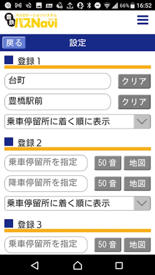 You can register up to four combinations of boarding and alighting stops.