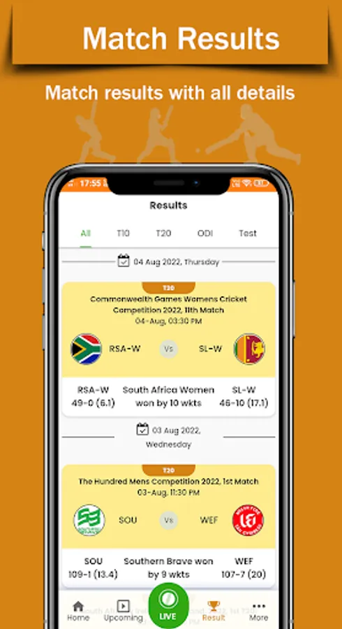 - Results of recent matches - in case you want to look at the scorecard of a game that you recently missed.