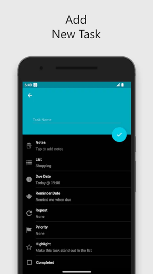 • Support for tasks without a due date, all-day-long tasks, and tasks at a specific hour of the day.