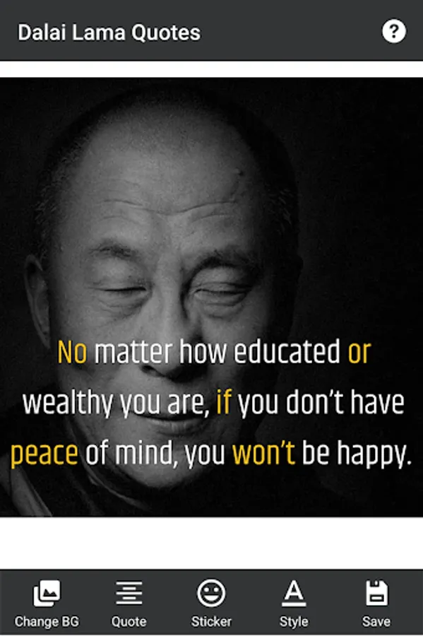 Using this app you can read and share Dalai Lama visar with images.