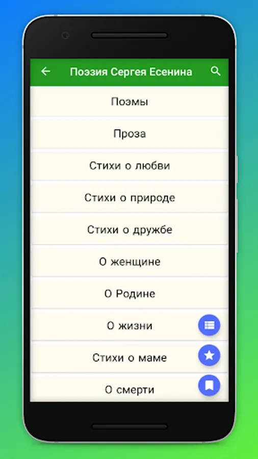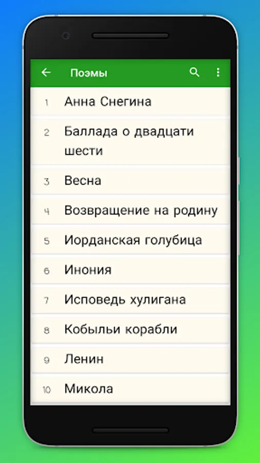 A simple and pleasant interface will allow you to immerse yourself in the great creativity of the great poet. You can also read poetry.