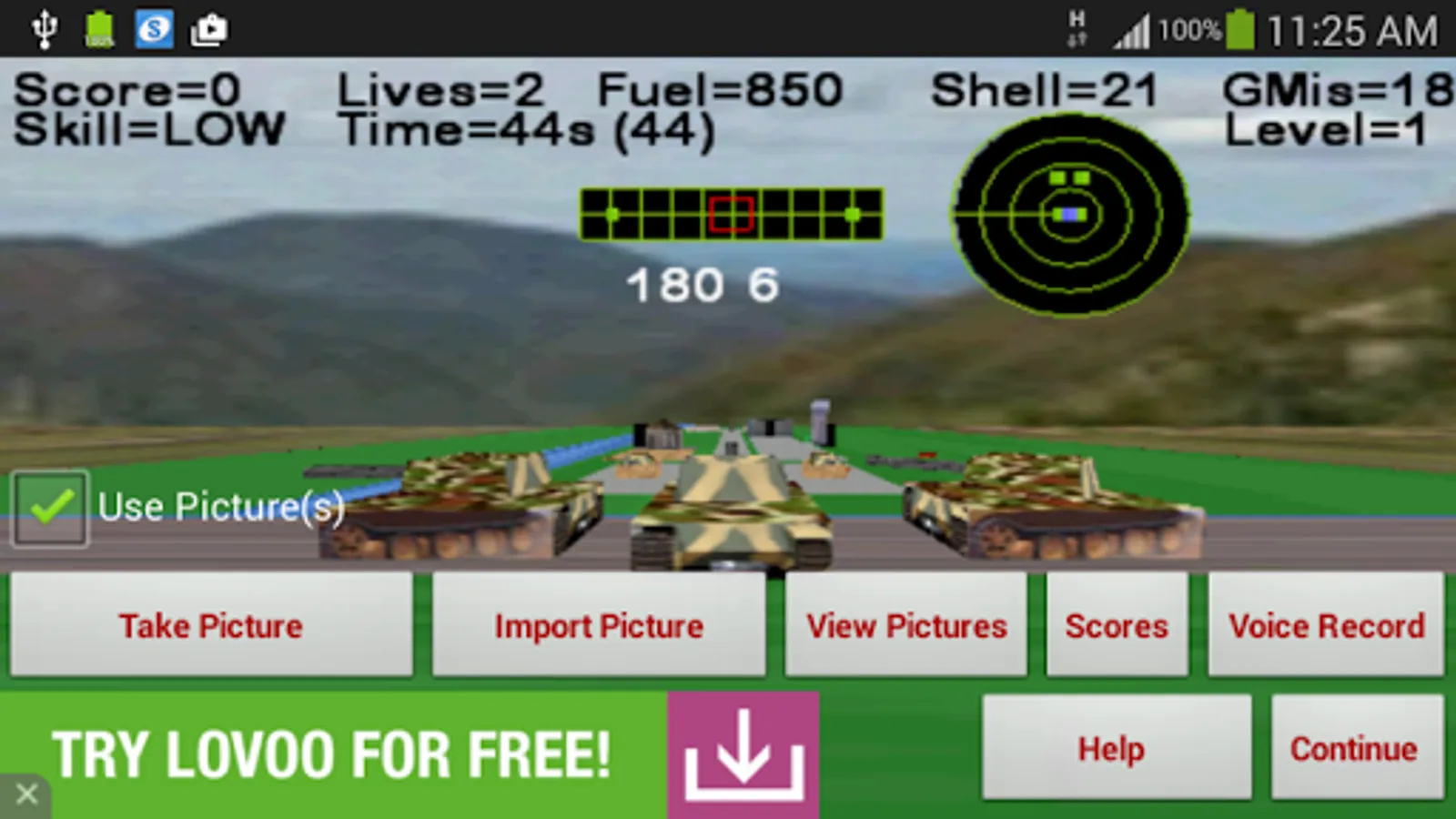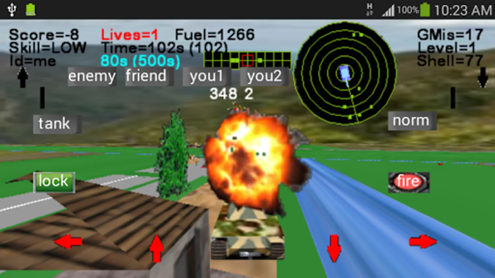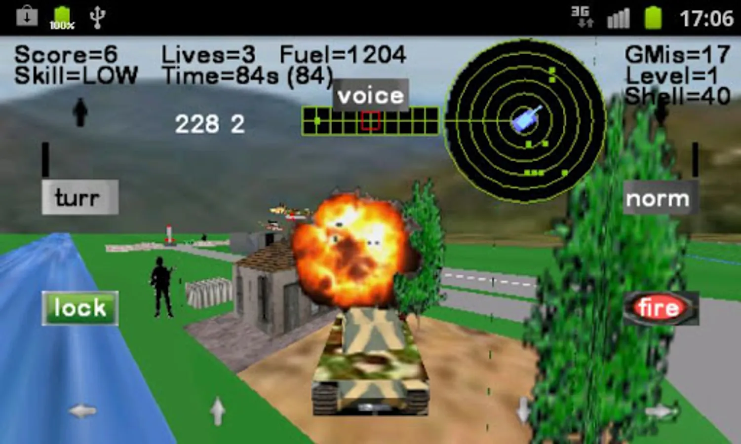 Use your Armoured Tank in Battle against increasing numbers of enemy armoured tanks,helicopters,jets, missiles and anti-tank guns. With your Radar Scanners, Infra-Red Night Vision and Missile Targeting System lock onto them and run up the points to move on to new levels.