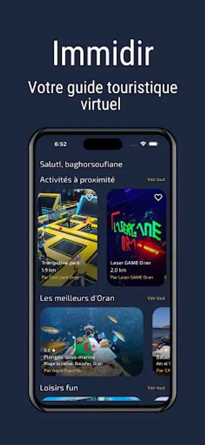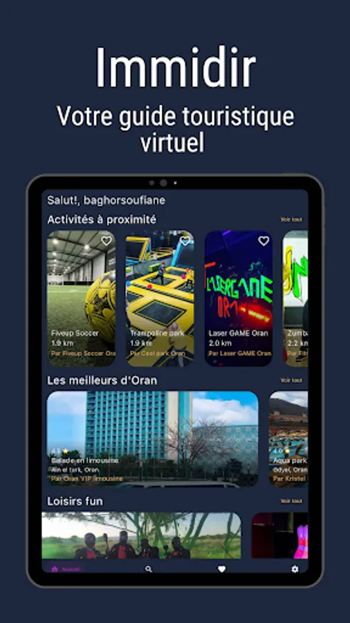 Immidir is a free virtual tourist guide for everyone, in one click you will know about all the activities around or at the destination you want to visit.