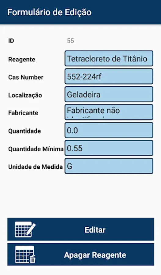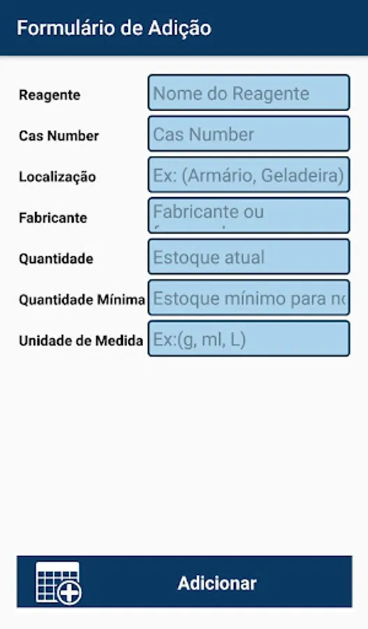 The idea came from a research on which problems affect the daily life of a researcher in the laboratory. With this in mind, we have identified the flaw in the reagent control system, which consists mostly of a printed list of the names and quantities of reagents purchased. However, this makes it difficult to update the list and, consequently, maintain inventory. Therefore, we think of making this platform so that the user has more security and information about their search environment.