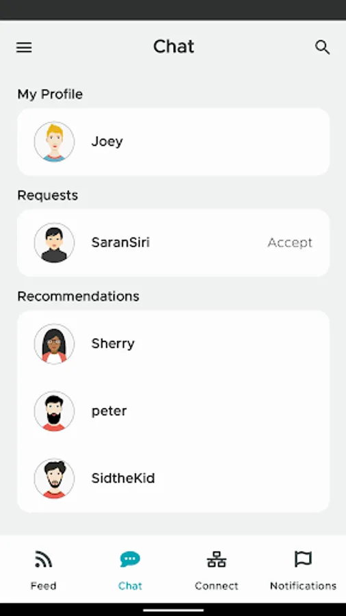 Connect with like-minded individuals through Connect’s private and encrypted chat function. This is an optional feature that requires both parties to opt-in before a conversation can begin. Conversations are only visible to its two participants.