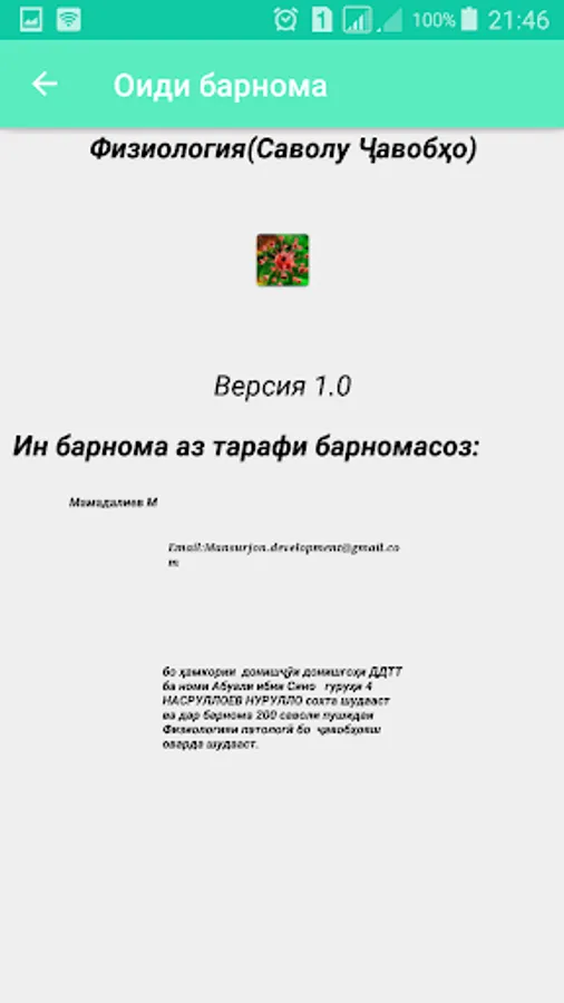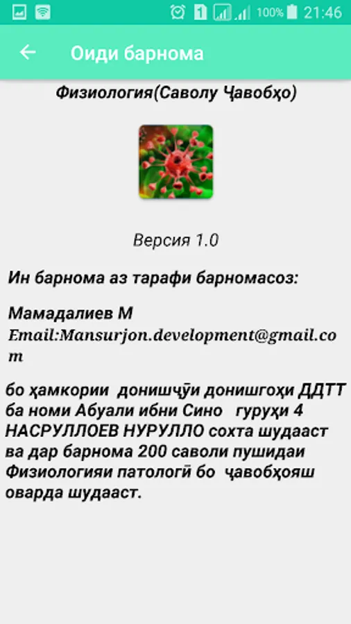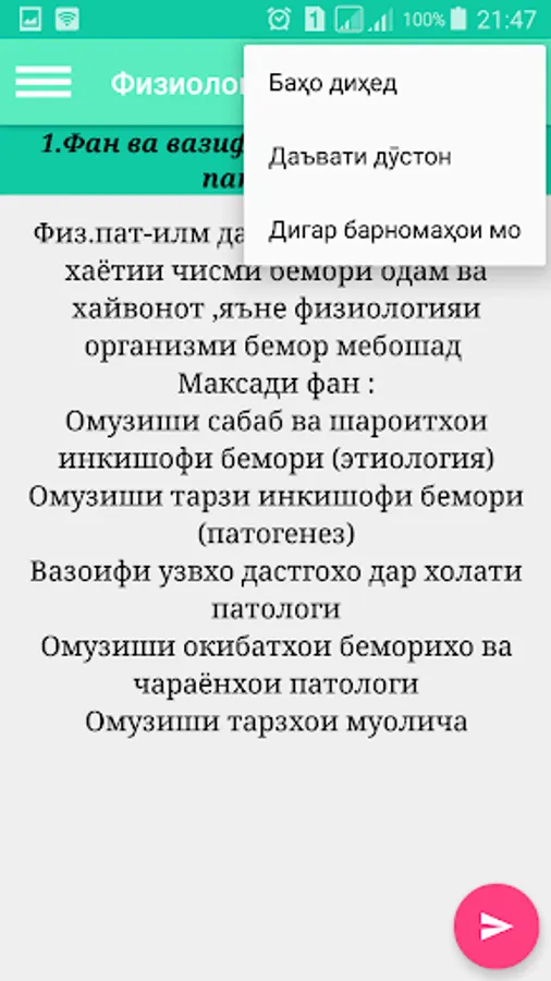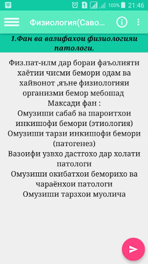 Gift of barnomia mazkur 200 savolu ҷavobkhoi Physiology and Pathology ovarda shudaast va barnomai mazkur behtarin rohnamo baroi donishhuyoni: