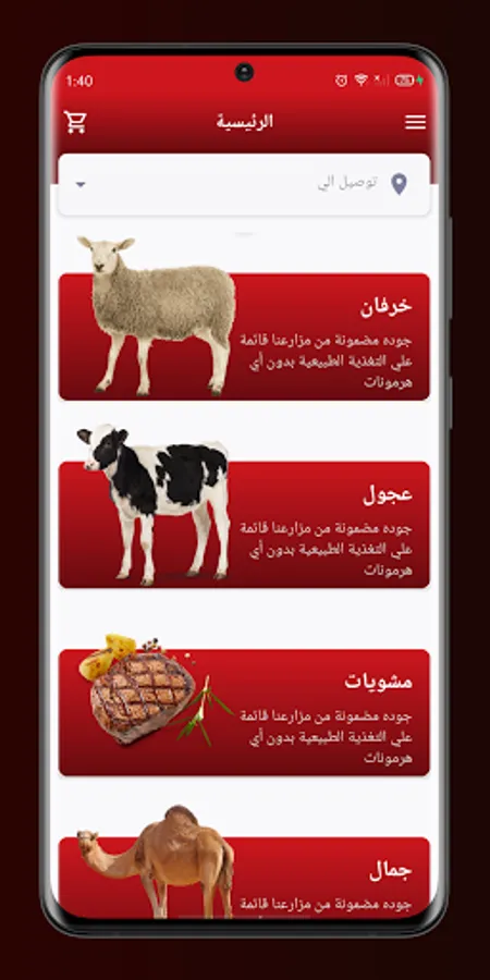 The Meat House is a specialized app for selling carcasses. It offers different types of sheep, calves and camels of different ages and sizes, and the carcass is subjected to a health examination before selling, then it is slaughtered according to Islamic law and prepared to the customer, in addition to delivering it to the door of your home or your rest. We also have grill service of all kinds