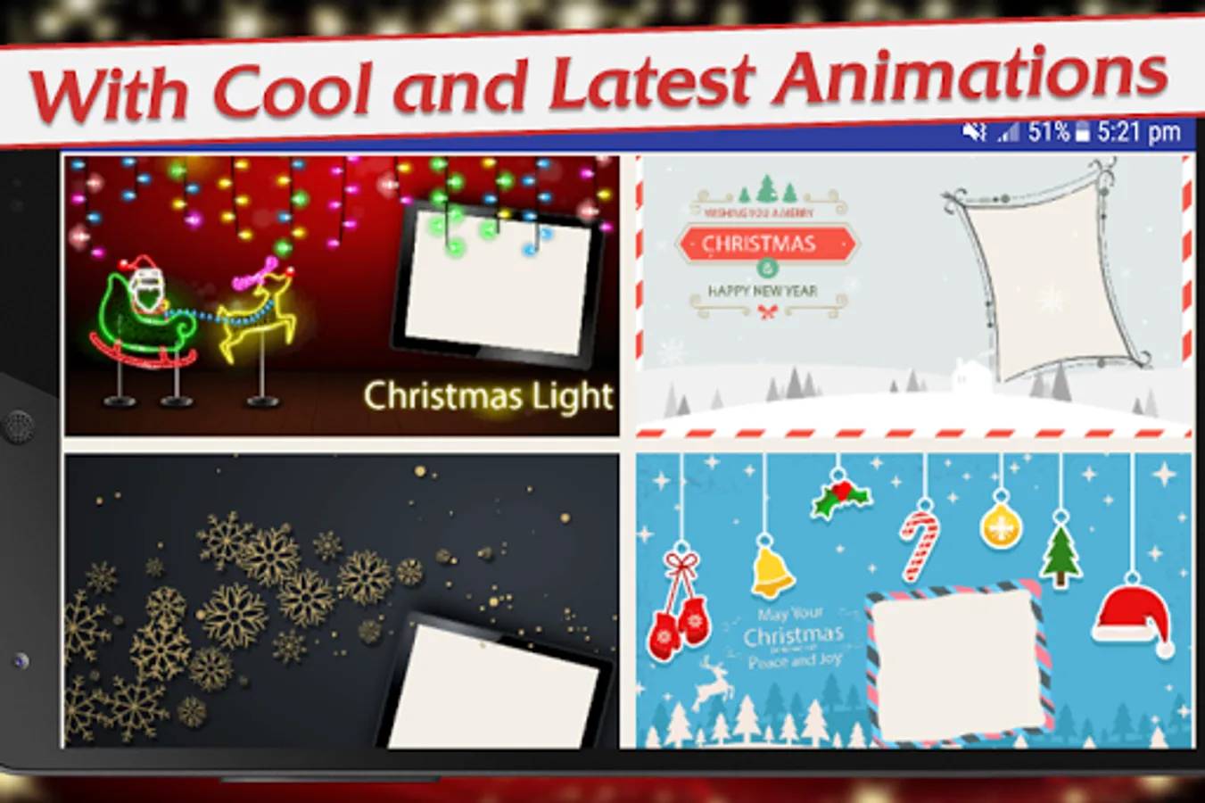 Merry Christmas GIF Animation Photo Frames Free App is the gift maker app. Make your perfect photo with photo editing tools like crop photo, rotate photo, drag photo, zoom-in and zoom-out photo. Save your photo as Merry Christmas GIF frames, and share your Christmas GIF Photo as GIF through social networks like Facebook, Instagram, WhatsApp etc.