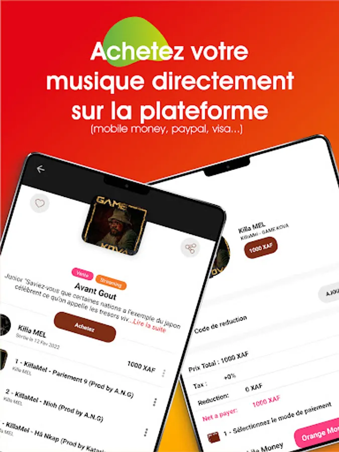 We give the possibility to artists and/or labels to make their music catalog available for listening and legal downloading (offline reading) and for sale on our platform, and to the user to stream Cameroonian and African music in audio and video format. by subscribing via an account, and to be informed of the various musical events that will be held in Cameroon.