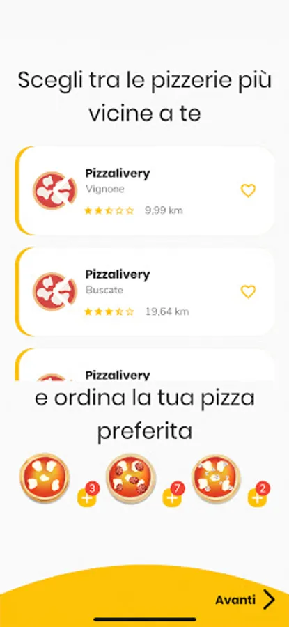 Select the pizzeria among those in your area, choose from the pizzas on the menu or create your own pizza, order directly online and follow the progress of your order from the comfort of the app.