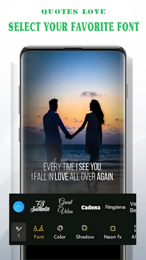 Text on photo is a free application that helps users easily add text to photos. You just need to enter what you need to write and insert it into the image. You can browse through many different colors and fonts for pictures. Therefore, Text to photo helps you easily create pictures of sparkling love without spending too much time.