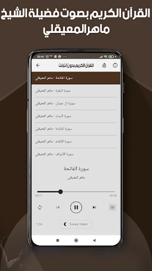 The Maher Al-Muaiqly Quran application - without the net allows you to hear the entire Holy Qur’an with the voice of Maher Al-Muaqili through your mobile phone or tablet with ease.