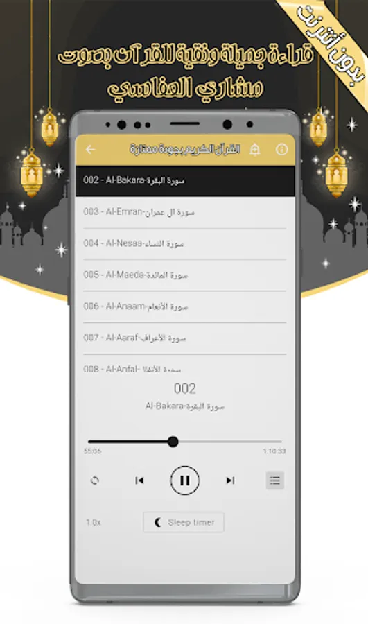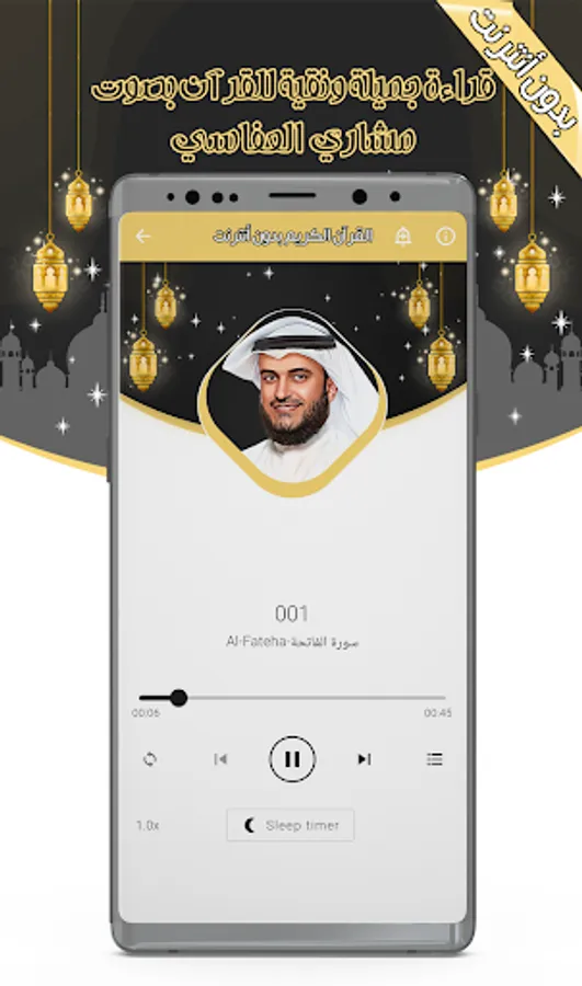 The application of the Noble Qur’an provides the voice of Mishary Al-Afasy. You can hear all the surahs of the Noble Qur’an through your mobile phone or tablet with ease and ease through one program that contains all the surahs of the Noble Qur’an. In order to enjoy reciting the Noble Qur’an with the voice of Sheikh Mishary Al-Afasy wherever you want.