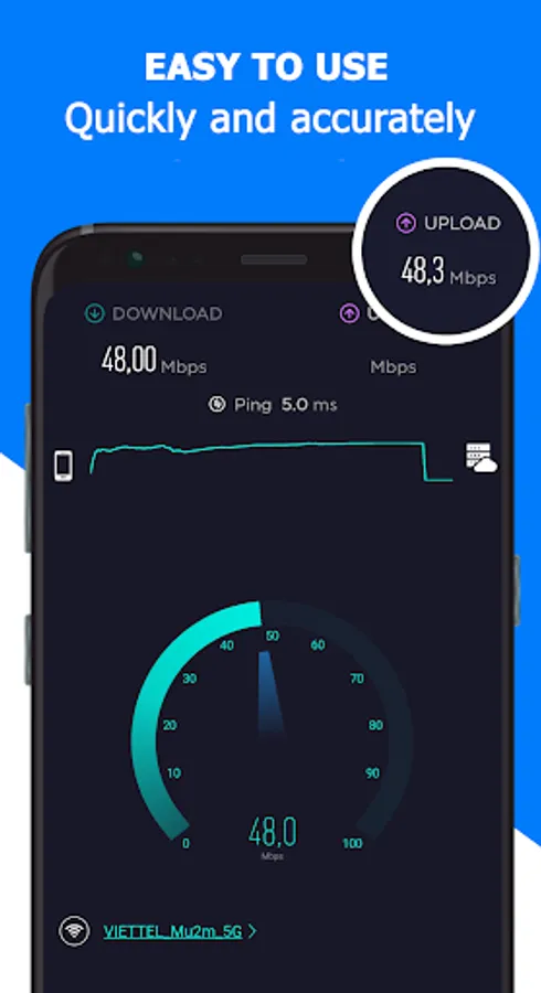 Speedtest our is a free internet speed meter. It can test speed for 2G, 3G, 4G, 5G, DSL, and ADSL. It's also a wifi analyzer that could help you test wifi connection.