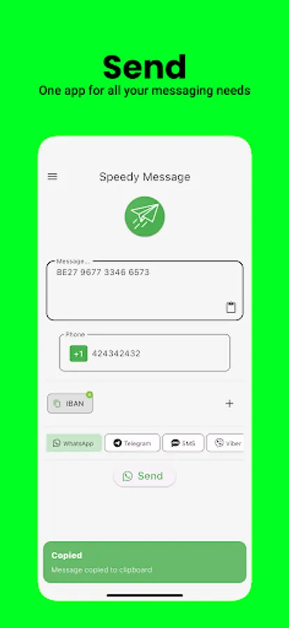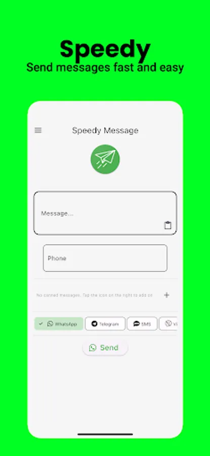 Legal Notice: Speedy Send is a third-party app and is not affiliated with or sponsored by Apple iMessage, Google, Telegram, WhatsApp, Viber, or Meta Inc.