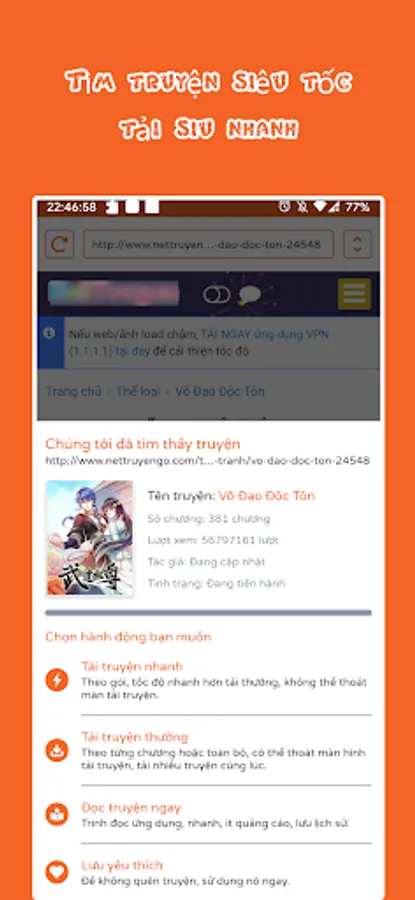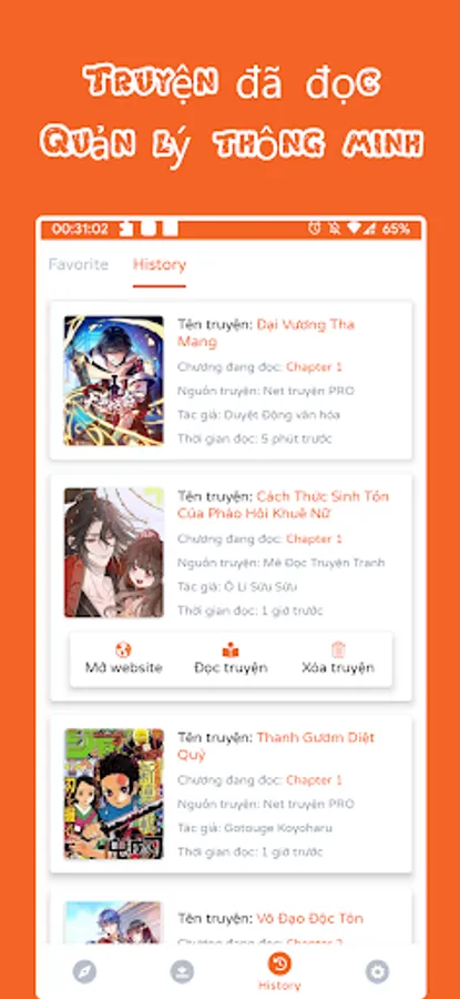 Easy-to-use interface. Automatically save reading history, easily continue to follow the story.