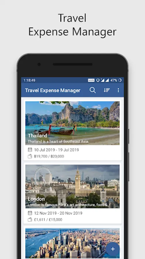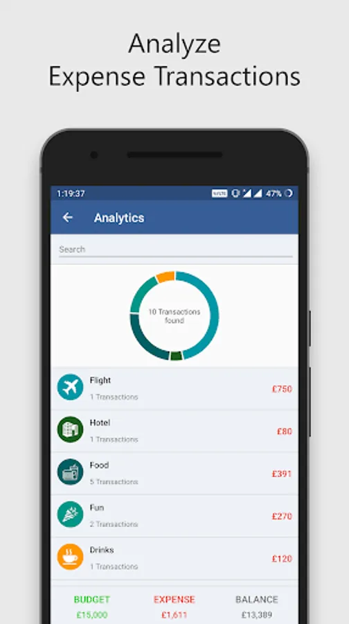 Get free from all the annoying calculations while on the trip and save your valuable time. All your travel expenses will be organized by our Travel Expense Manager. Keep track of all the expenses covered in your trip by our detailed analytics screens.
