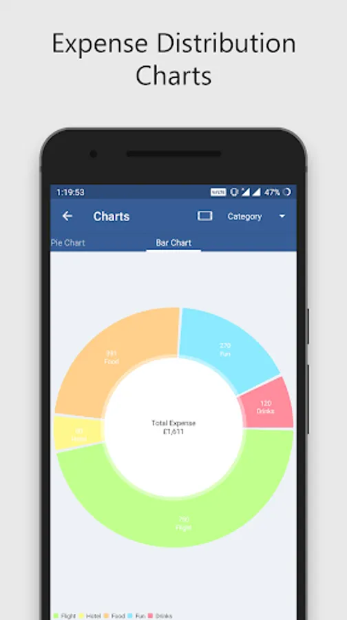 • Category/Date wise Pie Chart & Bar Chart to analyze expense.