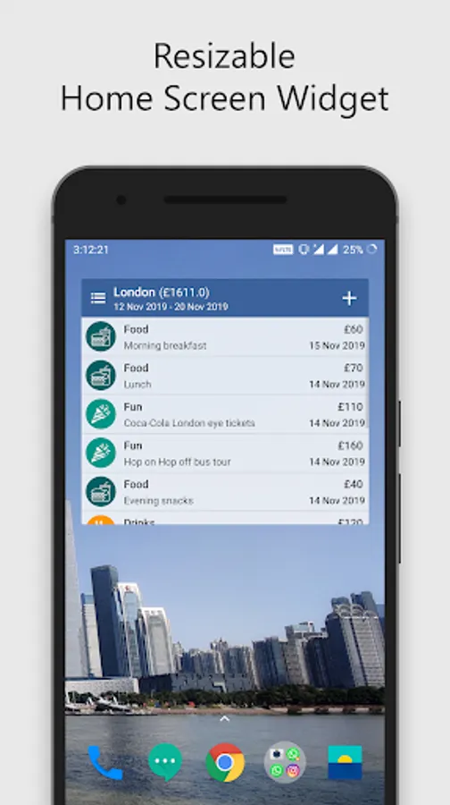 • It has a resizable home-screen widget that displays all Trip Related Expenses.