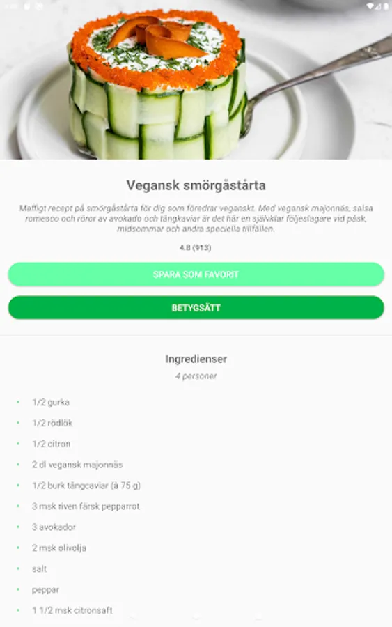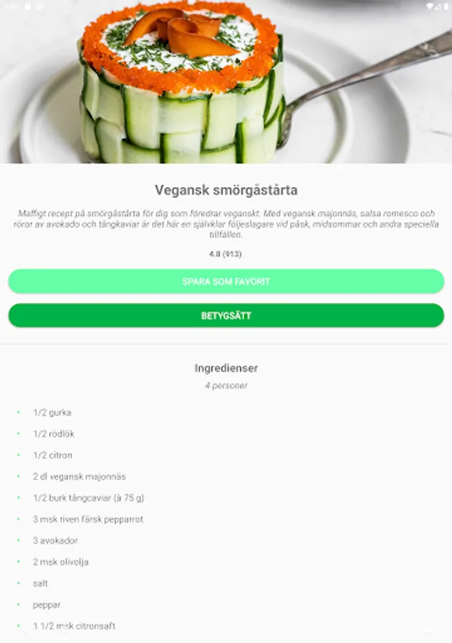 Here are recipes from all the world's cuisines - Swedish, Asian, Lebanese, Mexican, French and Italian. The app is constantly updated with new popular and easy-to-prepare recipes. When you are looking for a quick vegetarian lunch, a slightly more luxurious dinner or a simple but fantastic vegetarian Friday treat - this is the app for you.