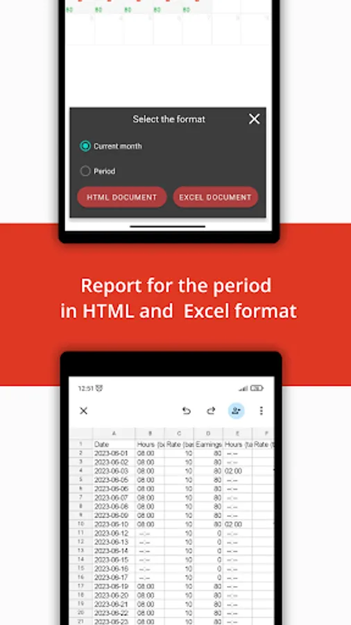 - Save monthly report in html text format or excel spreadsheet (xls).