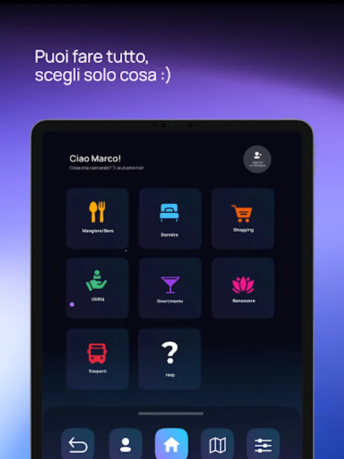 World4All represents the tool par excellence in the world of reduced mobility. You will be able to take advantage of everything that the area has to offer in a simple and immediate way. Setting the initial settings and advanced filters will allow you to finally have the activities that interest you most such as clubs, restaurants, hotels, transport, public and private services, and much more just a click away. Each activity will have a card with descriptions and photos dedicated to all the services designed for people with reduced mobility. Thanks to geolocation you can easily be guided to your destination and always have all your favorite activities available in the Wishlist section. Have a good trip!
