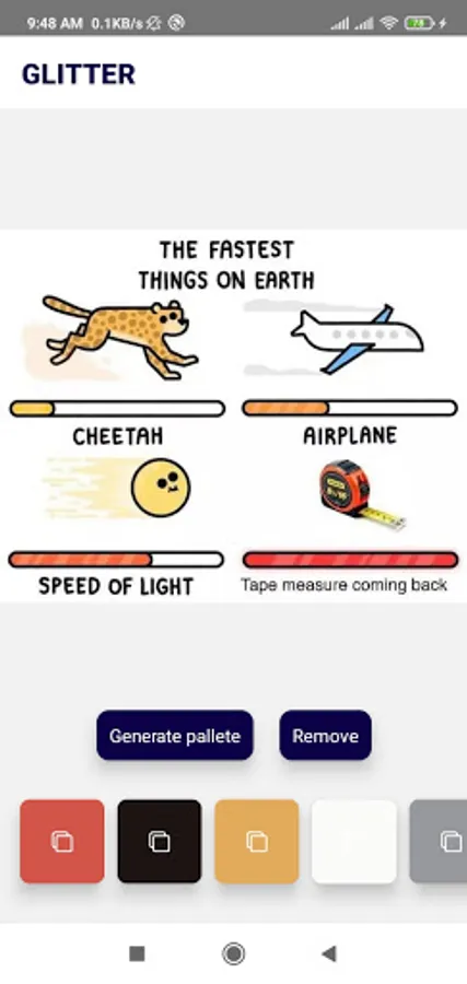 Glitters is a super fast color scheme app for android lets you create the perfect pallete for your next project. Add your favorite palletes to the favorites section of this color scheme generator. The simple, yet effective design, lets you navigate the app far more efficiently.