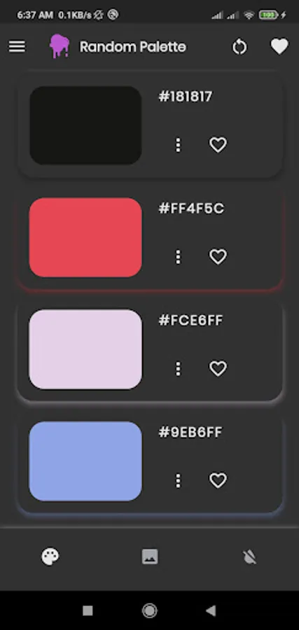Glitters is a super fast color scheme app for android lets you create the perfect pallete for your next project. Add your favorite palletes to the favorites section of this color scheme generator. The simple, yet effective design, lets you navigate the app far more efficiently.