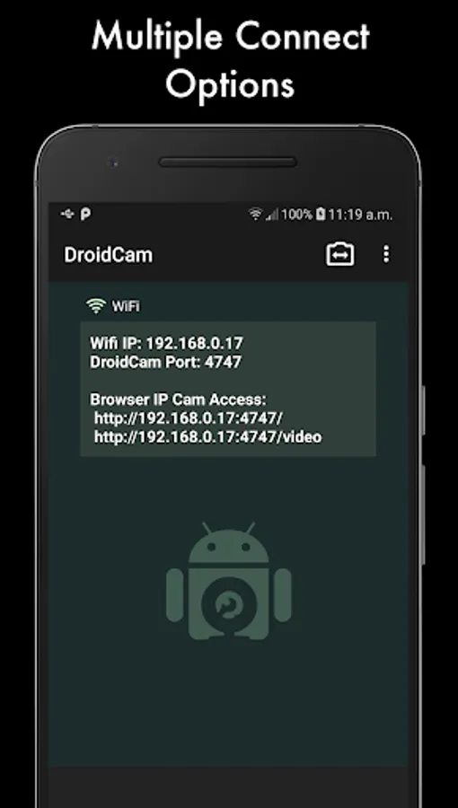 - IP Webcam MJPEG access (access camera via a browser or from another device).