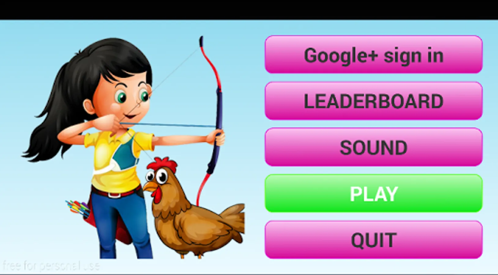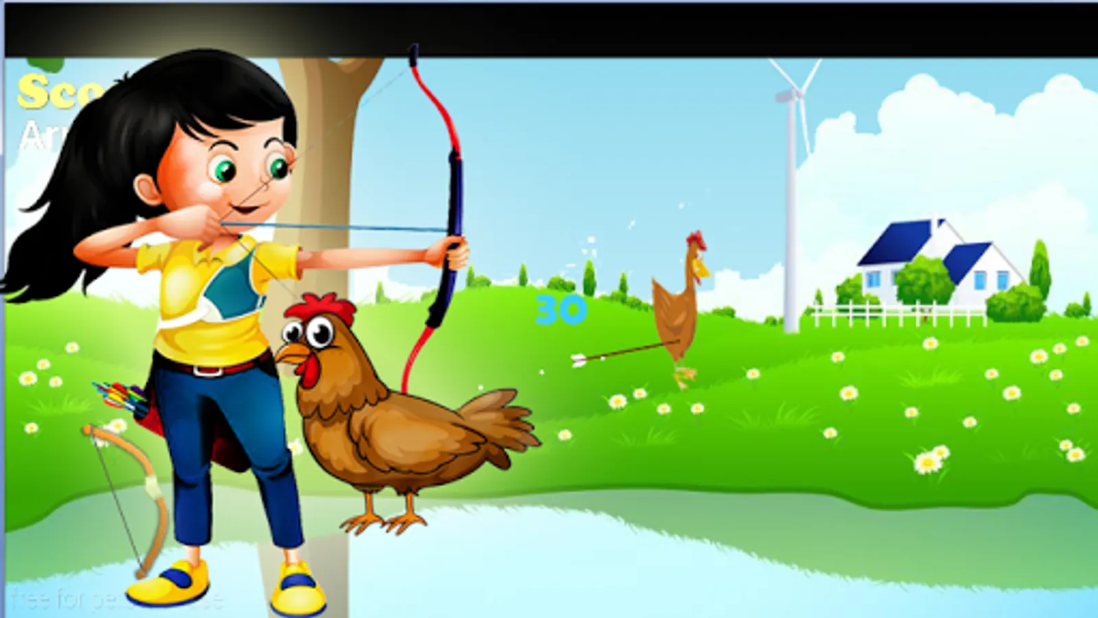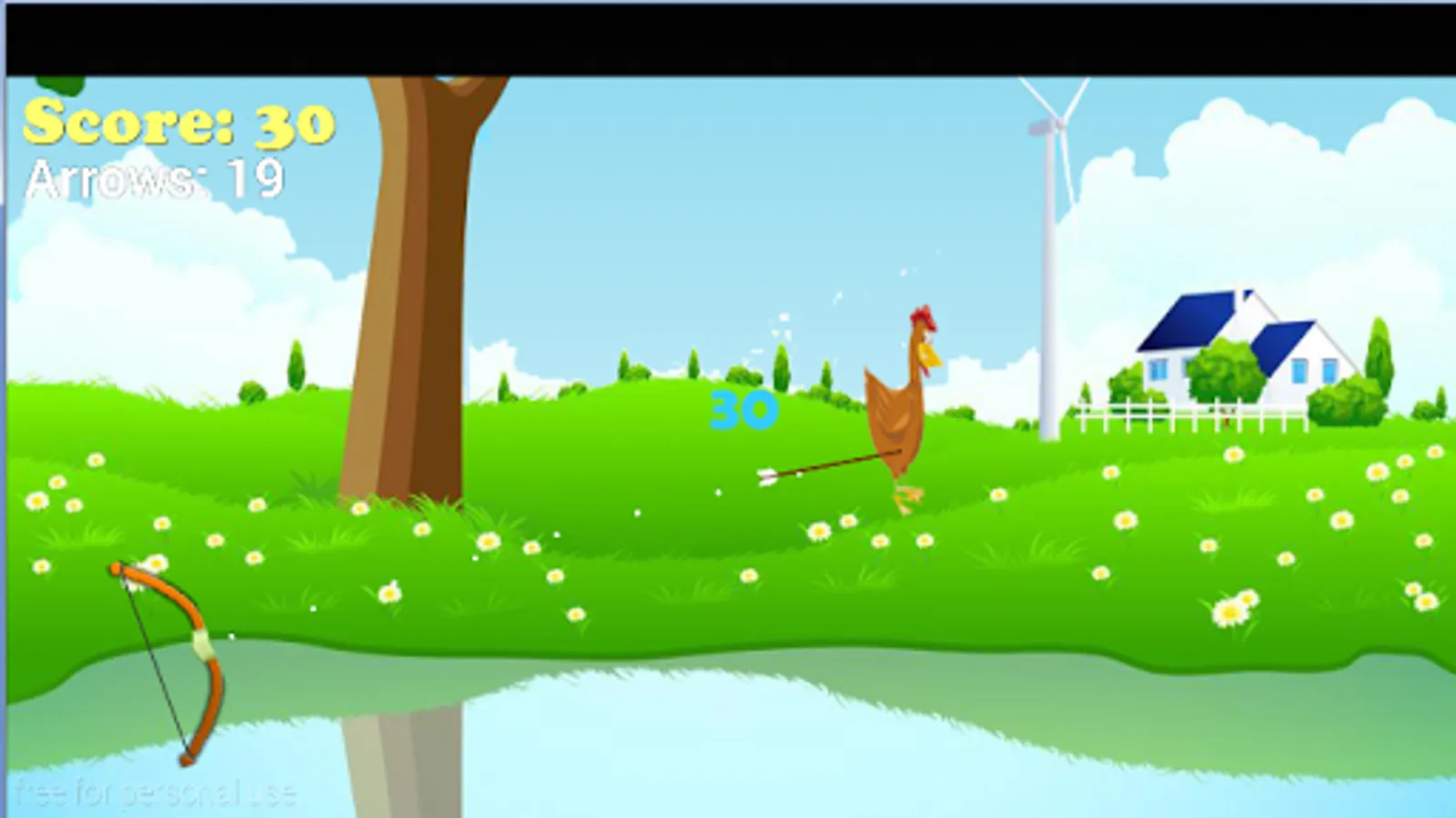 The game play is to shoot a chicken with bow and arrow and make a great high score.