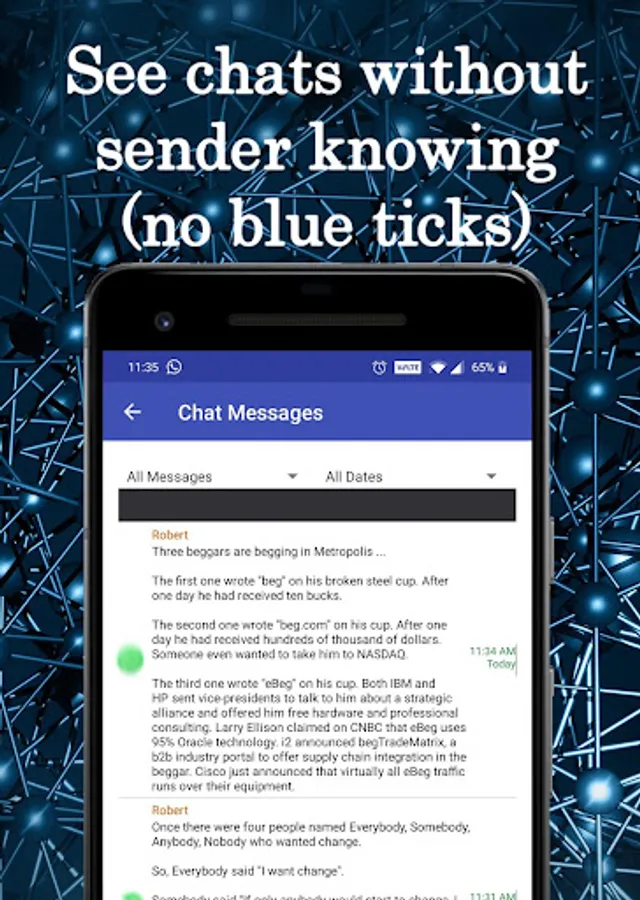 ✓ See the chat messages without the sender seeing blue ticks