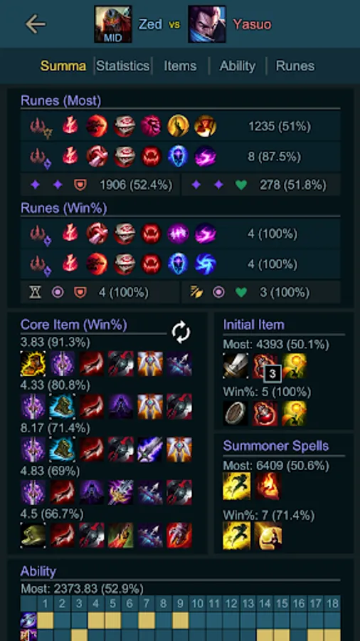 - Very detailed result page for vs-specific champion
