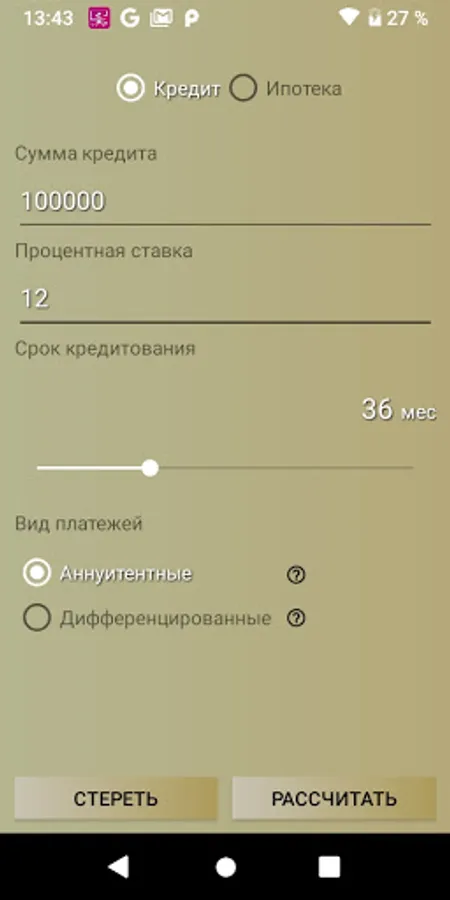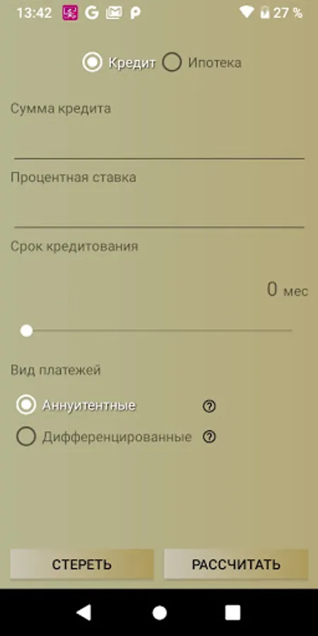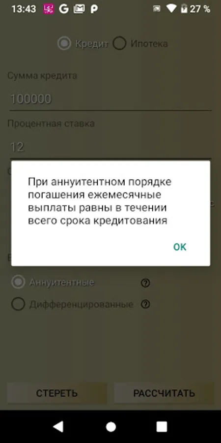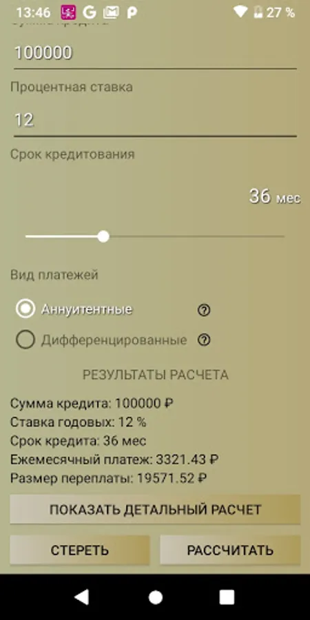 The CreditCalc application will calculate your loan and mortgage for annuity and differentiated payments, it will show: