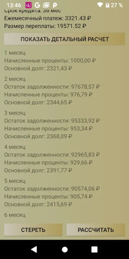 Also, in the detailed report, you can see how much must be paid each subsequent month, see the loan balance (depending on the type of payment).