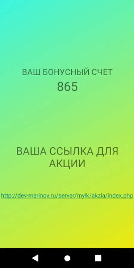 4. If the login is successful, the page is shown how many points are there - a random number and a link Promotions