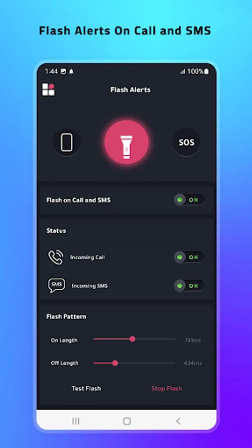 Flash alerts on call and sms alerts you of incoming calls and messages, Flash alert led flashlight for all notification on call flashlight when an incoming call or message arrives. Therefore, flash alert on call - flash alert led flashlight is considered the best application to help you not to miss any call or a message if the phone is in silent mode or vibrate mode.