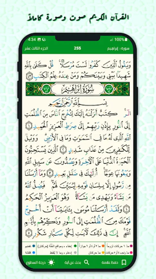The interface of the entire Holy Qur’an and the Golden Qur’an has been designed with a simple and smooth interface for everyone. Therefore, you can refer to the interpretation of any verse you want with the click of a button, with the ability to change the font size while reading the Holy Qur’an with Tajweed to make it easier for everyone, with many readers’ voices placed in a section dedicated to choosing your favorite reader. In the end, the Holy Qur’an on your phone helps you read the entire Holy Qur’an easily and conveniently.