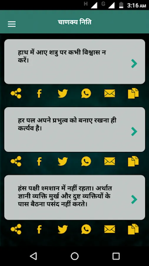 This Application describes all about Chanakya And Their Niti/rules in Hindi. It is completely offline app. Chanakya is traditionally identified as Kautilya or Vishnu Gupta, who authored the ancient Indian political treatise called Arthaśāstra. As such, he is considered as the pioneer of the field of economics and political science in India, and his work is thought of as an important precursor to Classical Economics. Chanakya is often called the "Indian Machiavelli", although his works predate Machiavelli's by about 1,800 years.