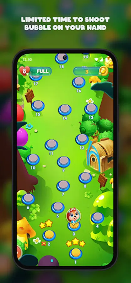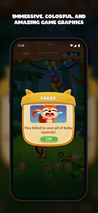 โ๏ธ How to play: Your task is to save all the trapped forest animals. There are baby chipmunks & baby flying squirrels. Shooting bubbles are easy but tricky! Aim so that the bubble touch a cluster of bubbles with the same color to pop them. You can bounce the bubble off the wall and you can also exchange the bubble on your hand to the next on the row. If thereโs no more move then the game ends and you have to repeat the level. You can buy powerups to help you solve a puzzle. We set a time limit on how long you can think and aim before you have to shoot bubble on your hand. You may exchange the current bubble with the next one to help you solving and popping the bubbles on the screen.