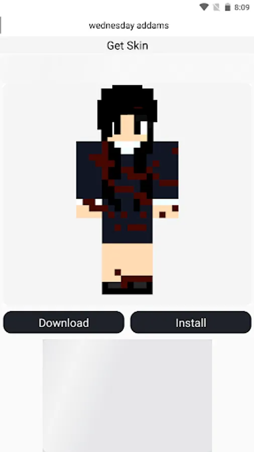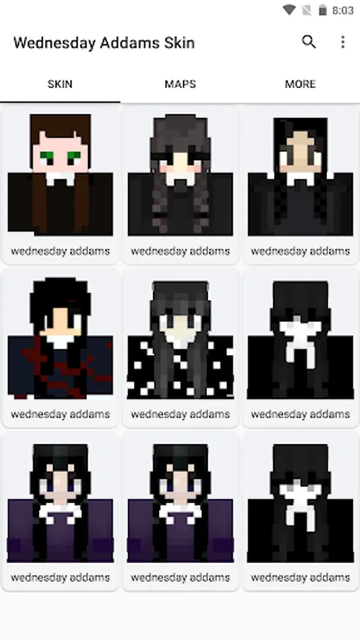 This app provides a Wednesday Addams character skin for Minecraft PE players. Players can use the Wednesday Addams skin to customize their player avatar in the game. The skin features the iconic black dress, black braided hair, and pale skin of Wednesday Addams from the Addams Family series. This app also includes a range of accessories to customize the skin, such as her signature braided pigtails, a spider necklace, and a black hat. This app is perfect for Minecraft PE players who want to add a spooky, gothic flair to their avatar.