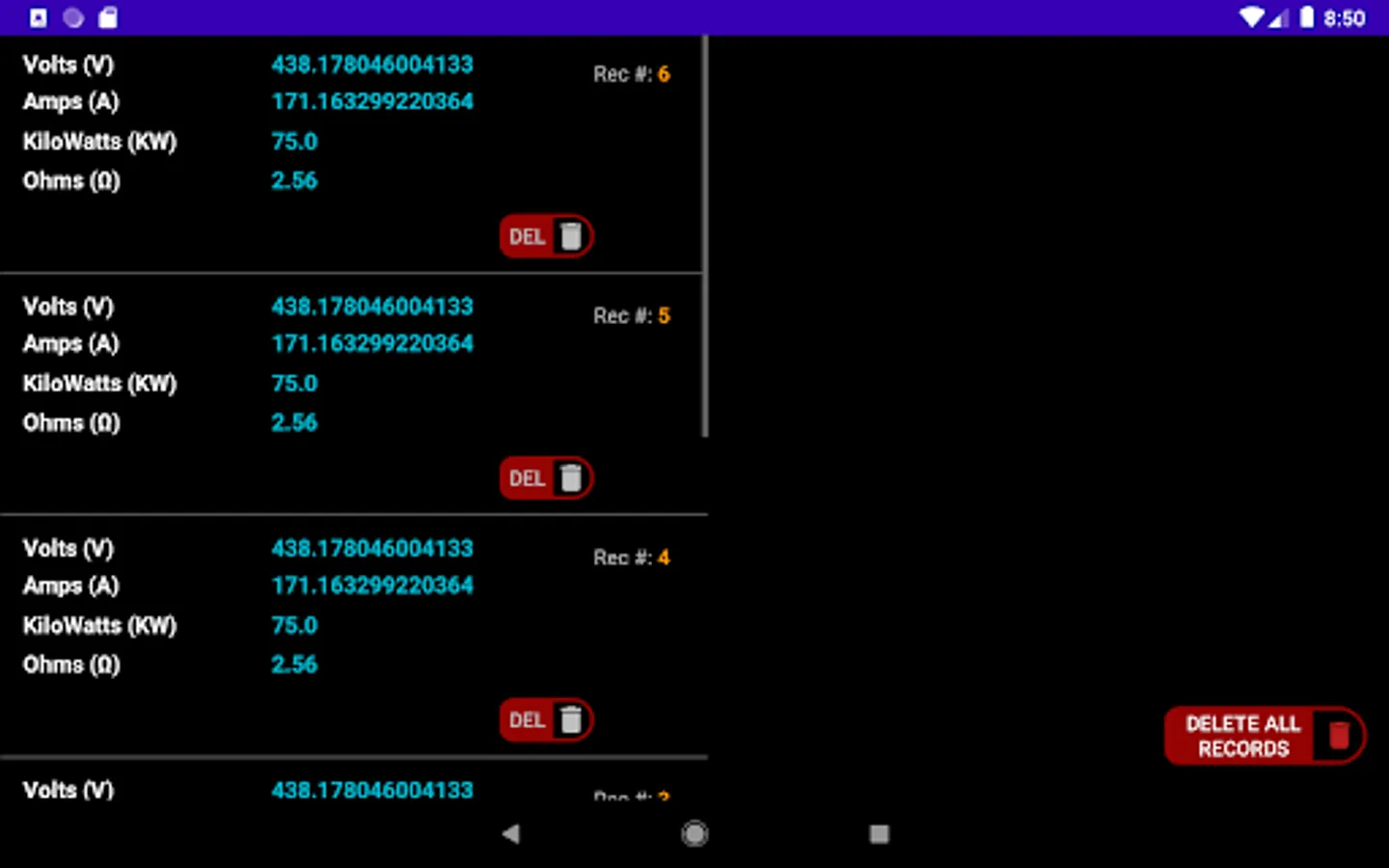7. Delete individual entries. Click on the DEL button next to the entry you no longer want. This will popup a dialog box confirming your choice. In the event to delete all entries, simply click on DELETE ALL RECORDS at the bottom of the screen confirming the dialog box for your action.