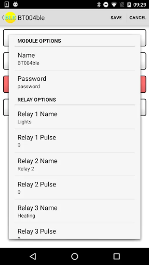 This app allows control of the Devantech BT004ble module which has 4 16amp relays. The app allows you to set custom names for each relay and to change the password and module name.
