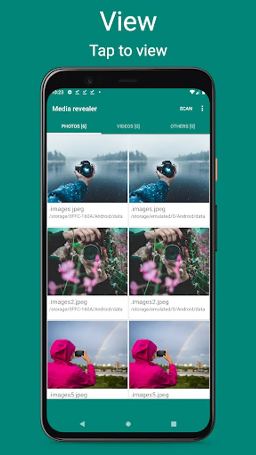 Media revealer helps to reveal any hidden media files (photos, videos) on your device.