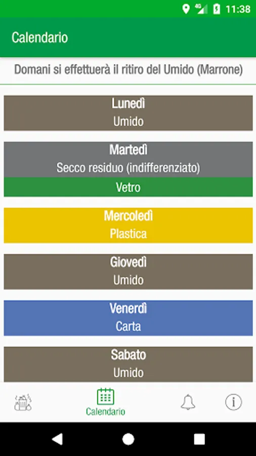 Every day you will be seen, by a notification, the type of collection that will go the next day to do not forget to throw rubbish!