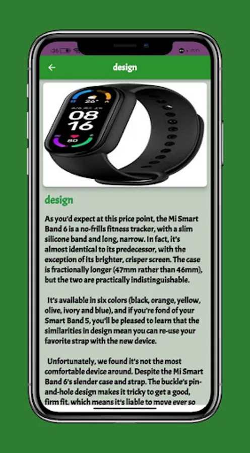 An app mi band 6 smart watch that gives you information about mi band 6 smart watch