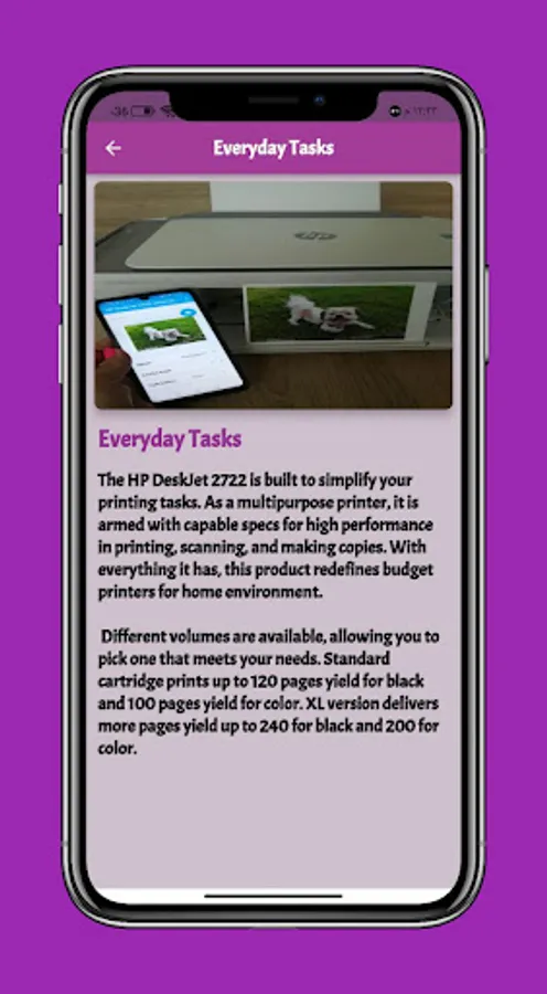 Welcome to the hp deskjet 2722e Guide app! This application provides you with a wealth of information about the hp deskjet 2722e.