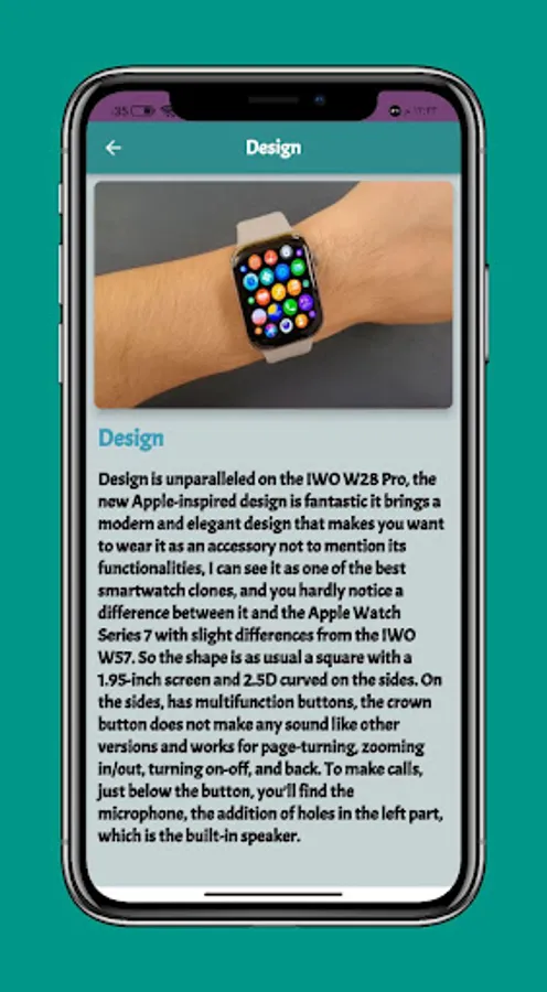 - A description of the design and screen of the W28 Max Pro Smart Watch